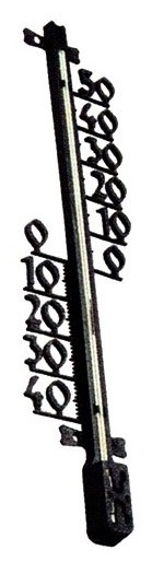 Originální venkovní plastový 3D teploměr DECORA. Rozměry: 470x110x25mm. Ukazatel ve stupních Celsia v rozpětí -30 až +50°C