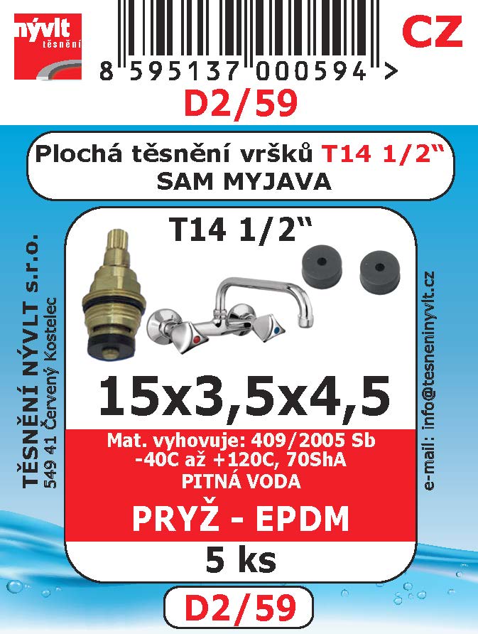 Těsnění sedel vršků ploché 1/2" EPDM pryž 5ks