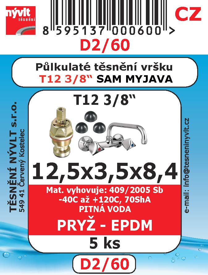 Těsnění sedel vršků půlkulaté 3/8" 12,5x3,5x8,4 EPDM pryž 5ks