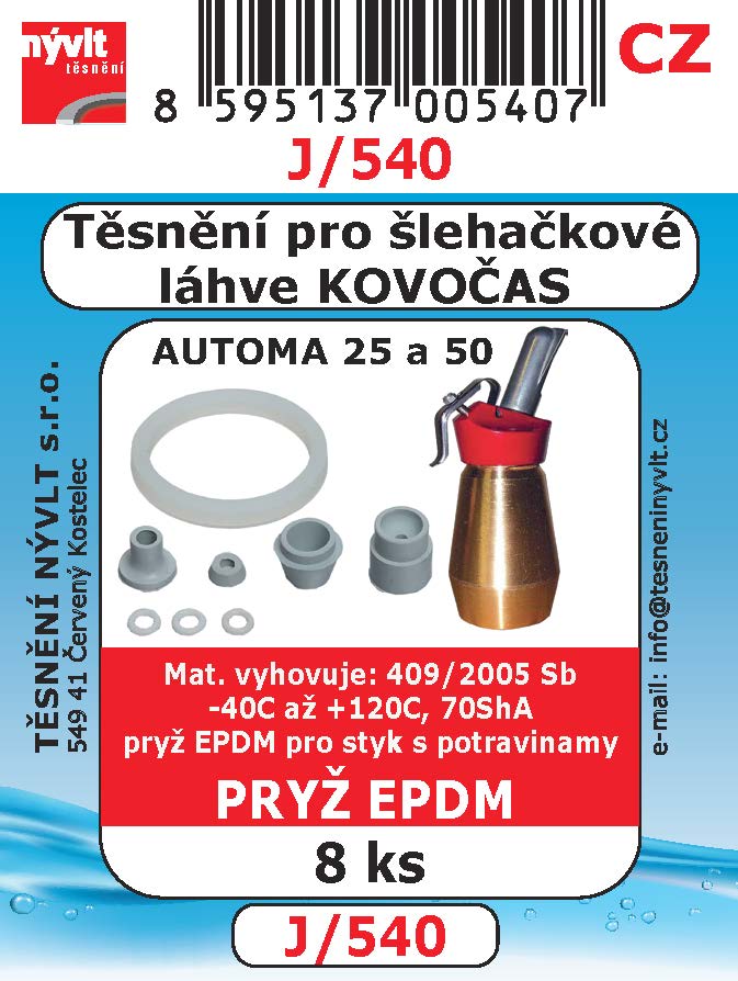 Těsnění šlehačkové láhve KOVOČAS universální EPDM pryž 8ks