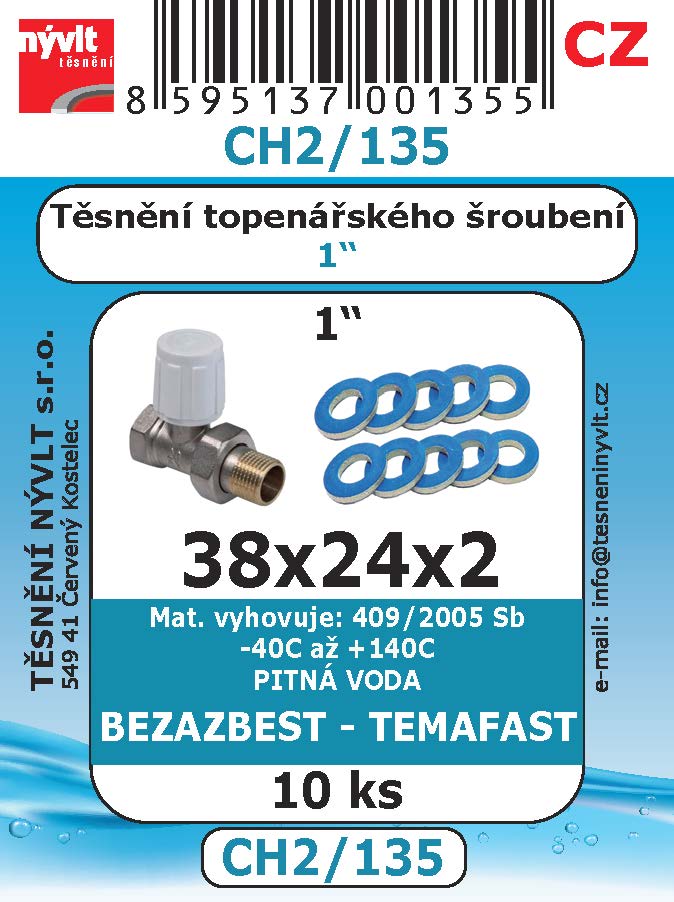 Těsnění topení 1" ploché; bezazbest TEMAFAST 38x24x2 mm - CH2/135