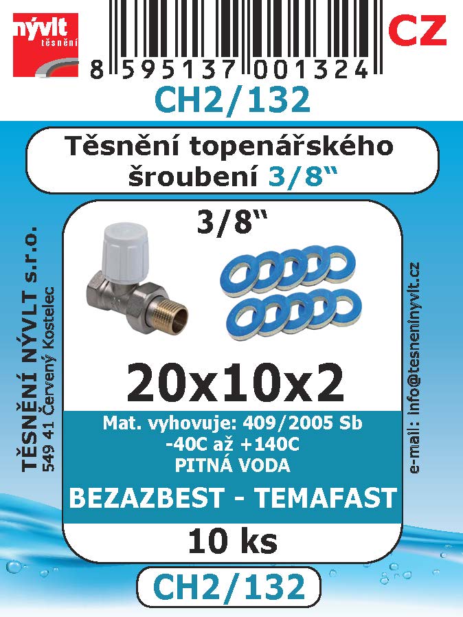 Těsnění topení 3/8" ploché; bezazbest TEMAFAST 20x10x2 mm - CH2/132