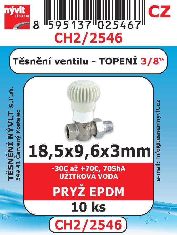 Těsnění topení 3/8" ploché; pryž EPDM 18,5x9,6x3 mm CH/2546