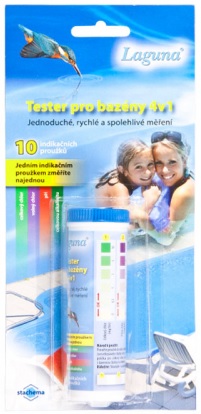 Jednoduchý bazénový tester pro měření hodnot pH, obsahu volného chloru (celkového + volného) a celkové alkalinity v bazénové vodě.