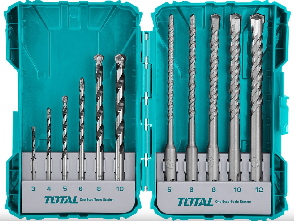 Sada obsahuje klasické vrtáky 3,4,5,6,8 a 10mm a vrtáky SDS Plus 5,6,8,10 a 12mm.
