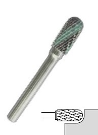 Tvrdokovová technická fréza, tvar C - válcová zaoblená, s ocelovou stopkou.