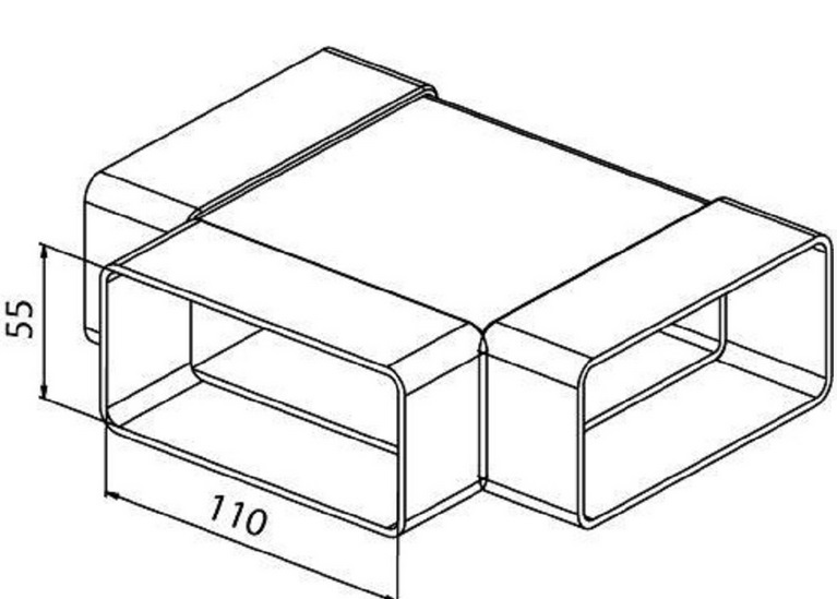 Použití: Tvarovka T slouží k napojování plochých kanálů ze tří stran.