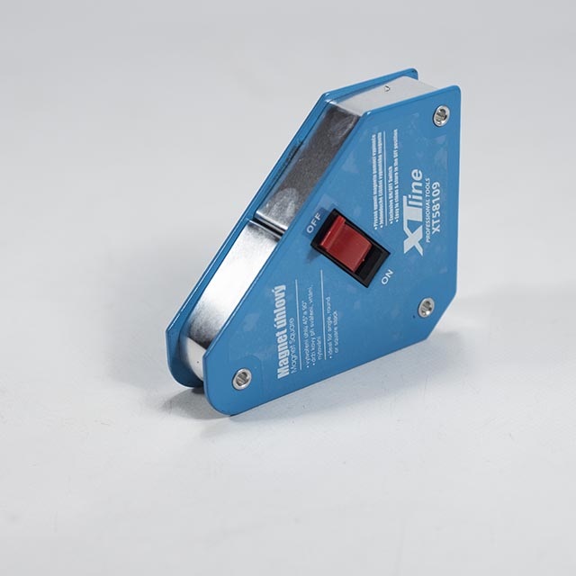 Permanentní magnety v přesných ocelových pouzdrech. Pomůcka pro svařování v daných úhlech. Nosnost oceli (železa) v kolmém směru v těžišti je 13 kg. Při odchylce z kolmého směru nosnost klesá až po smyk.