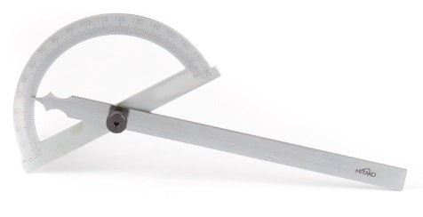 Milimetrová stupnice, zarážky pro úhly 45° a 90° a stupnice pro libovolný úhel od 0° do 180°.