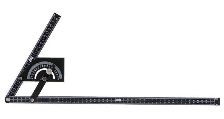 Milimetrová stupnice, zarážky pro úhly 45° a 90° a stupnice pro libovolný úhel od 0° do 180°.