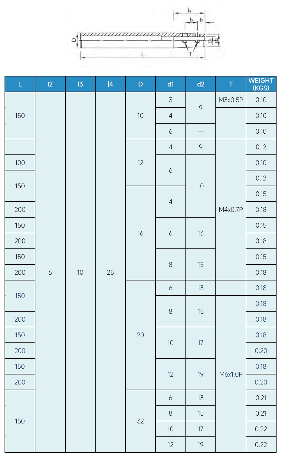 průměr 6,3 - 8,3 - 10,4 - 12,4 - 16,5 - 20,5 mm