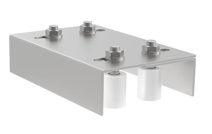 Vedení horní držák JP - 2 role je robustní konzola s pozinkovaným povrchem, určená pro stabilizaci horního rámu posuvných bran.