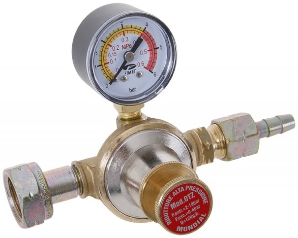 Vysokotlaký regulátor na plynná media, sregulací a manometrem.