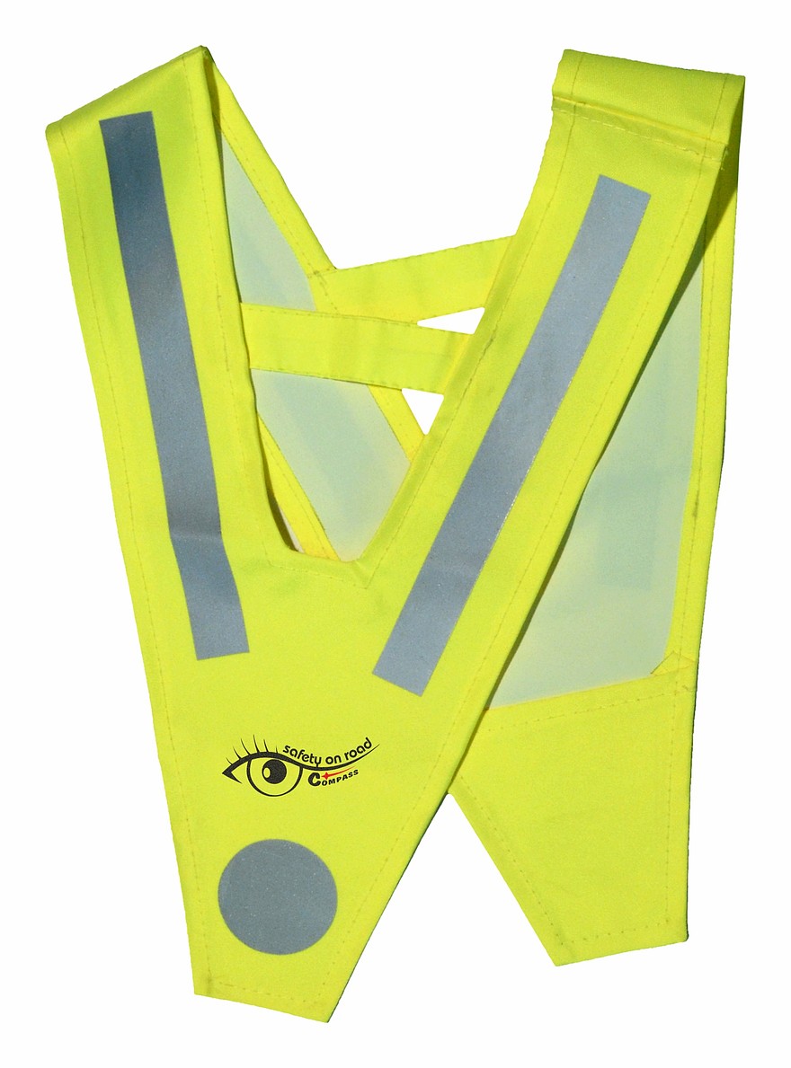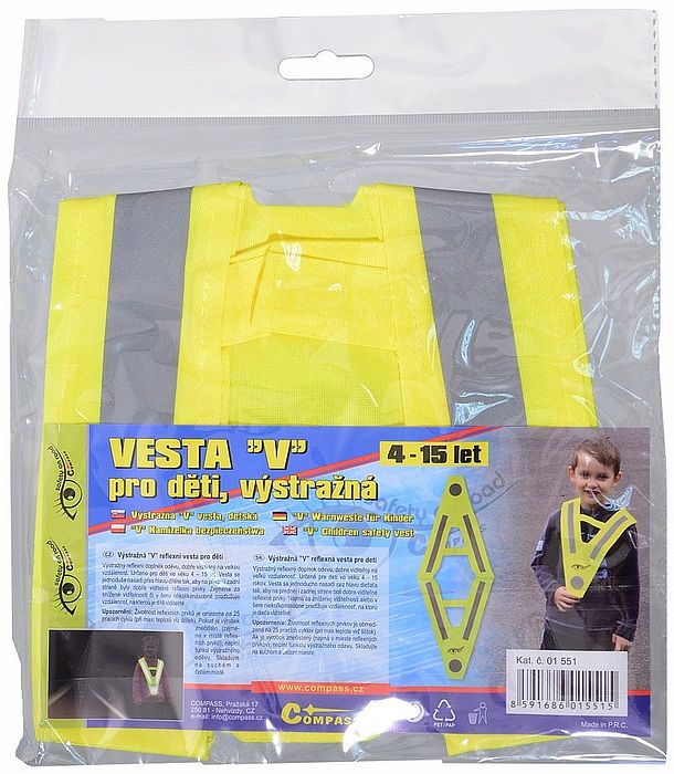 Výstražný reflexní doplněk oděvu ve tvaru V, dobře viditelný na velkou vzdálenost. Určeno pro děti ve věku 4 - 15 let.