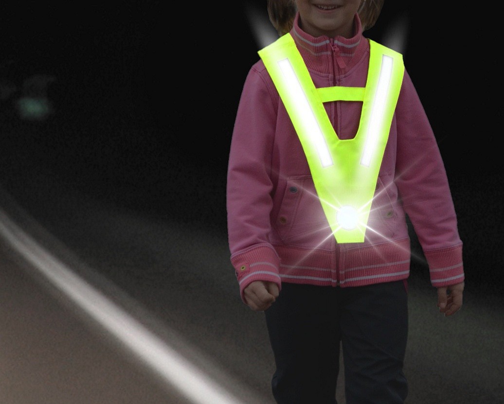 Zejména za snížené viditelnosti či v šeru několikanásobně prodlužuje vzdálenost, na kterou je dítě viditelné.
