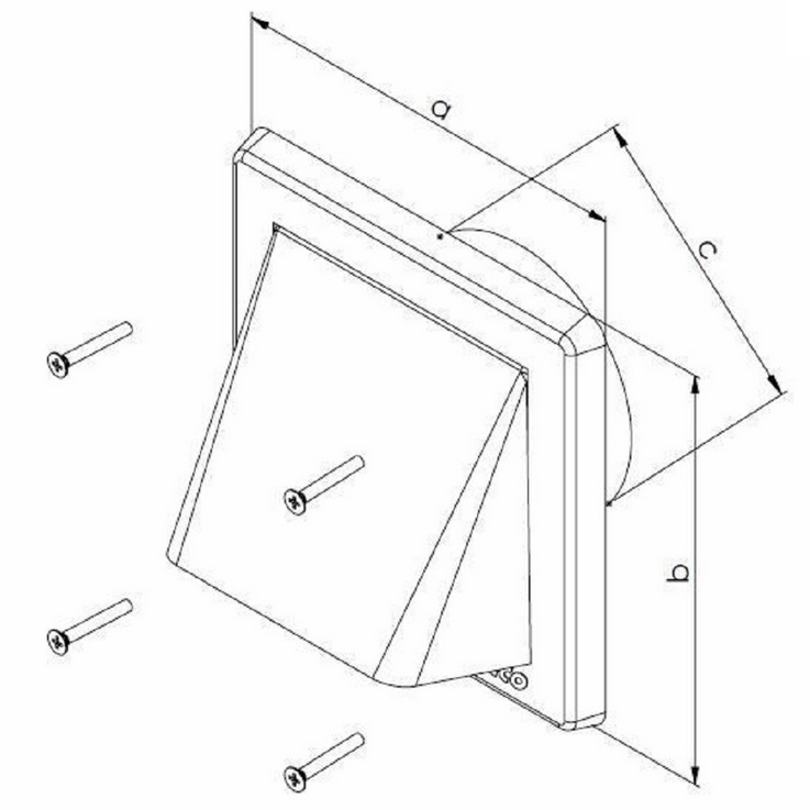 Instalace: Před instalcí nutno sejmout pružný kryt - stříšku za účelem zpřístupnění instalačních otvorů pro vruty. Mřížku zasunout do předinstalovaného potrubí nebo stavebního otvoru a z čela přišroubovat vruty do předem připravených otvorů opatřených hmoždinkami. Po přišroubováním vrátit pružný kryt-stříšku prostým zatlačením do mřížky.