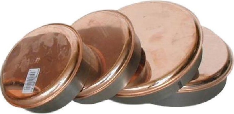 Kouřové víčko je vyrobeno z poměděného plechu (Cu). Slouží k zakrytí otvoru kouřovodu ve zdi.