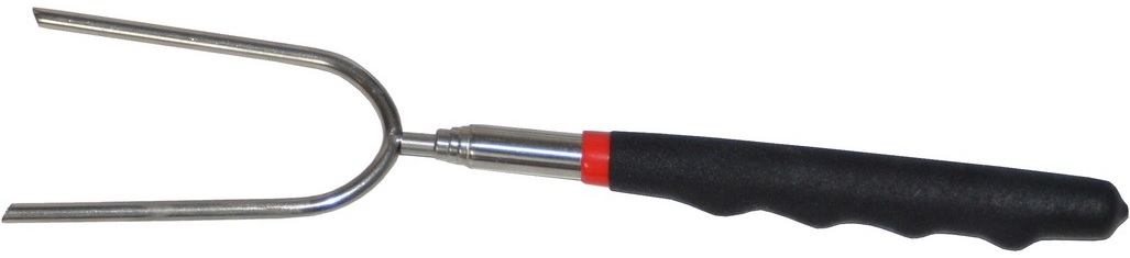 Opékací vidlice s dvěma nerezovými hroty je vhodná na opékání špekáčků, klobás a zeleniny nad ohněm či grilem.