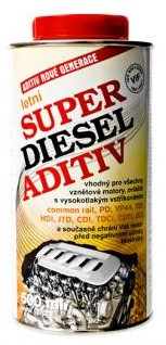 Letní přísada do nafty SUPER DIESEL ADITIV zvyšuje cetanové číslo, a tím zlepšuje spalování.