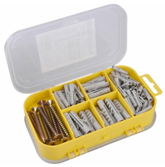 Praktická sada 170ks hmoždinek a vrutů obsahující 85ks hmoždinek a 85ks vrutů.