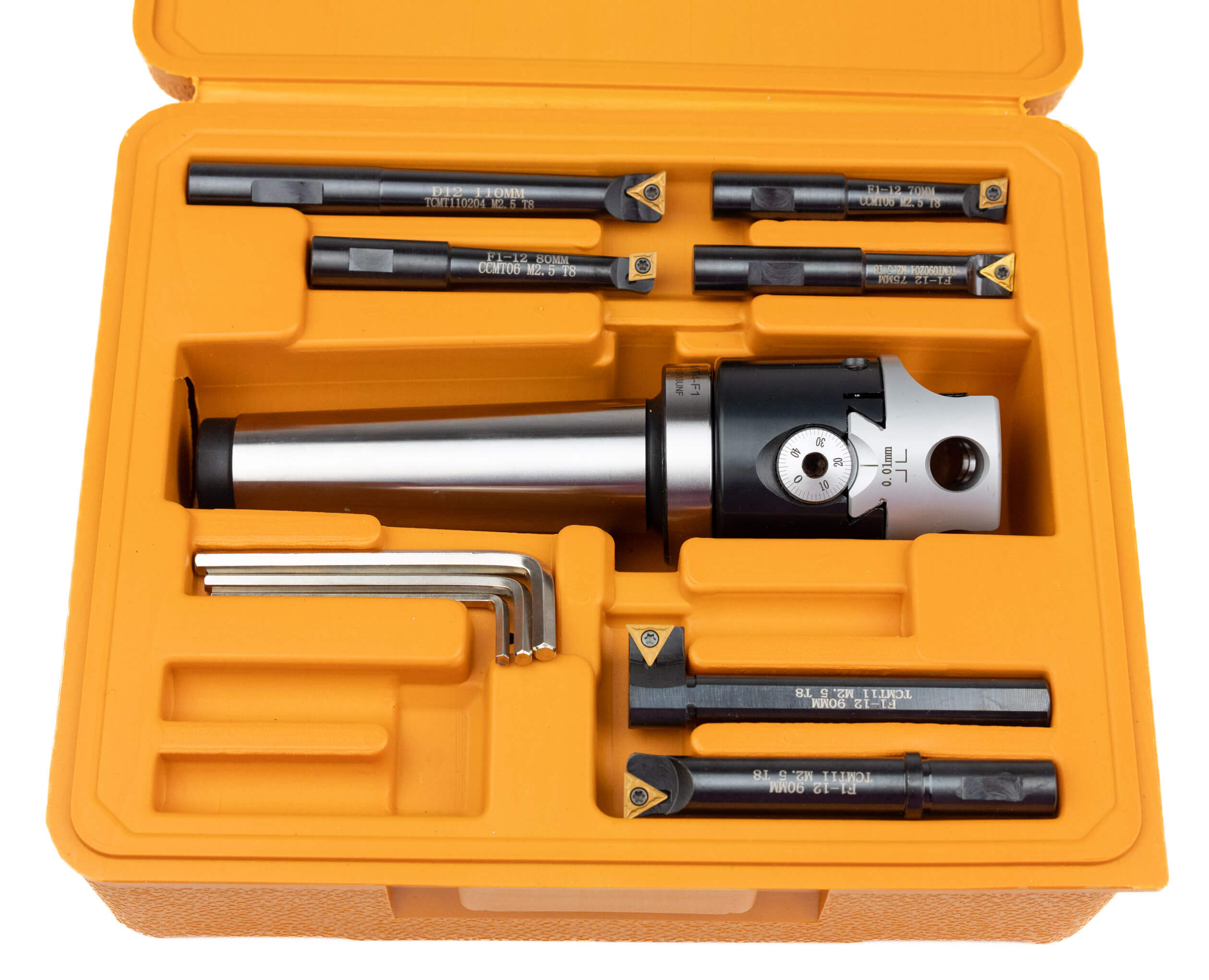 Hlava je dodávána s šesti noži s vyměnitelnými břitovými destičkami (tvary ISO)