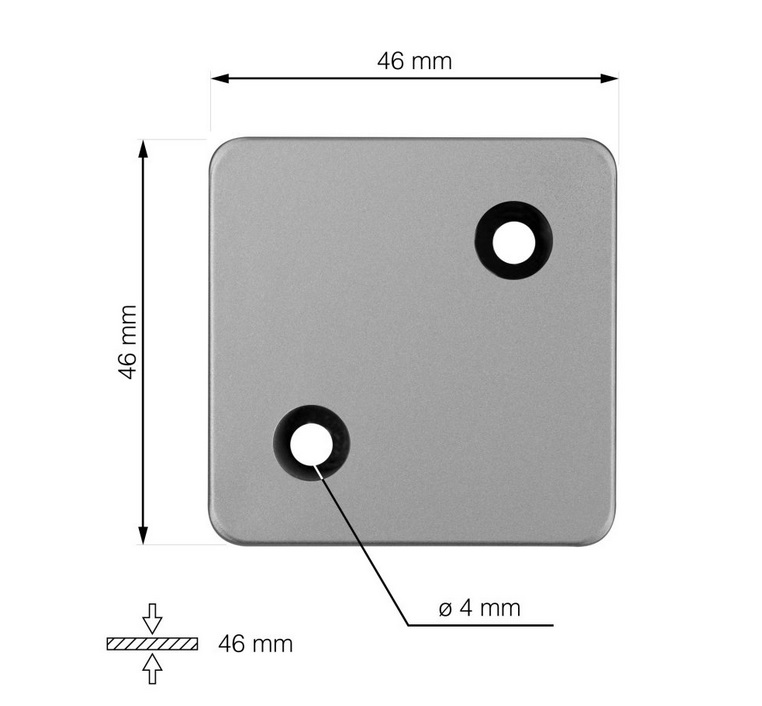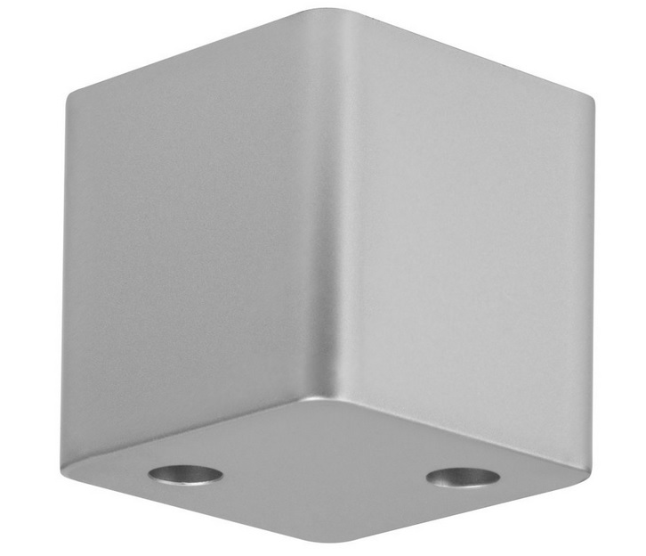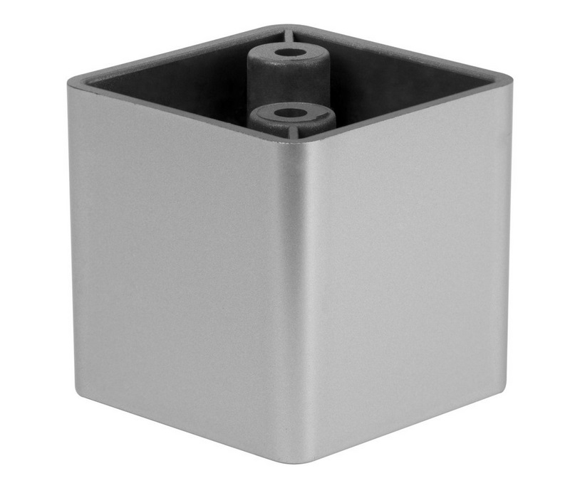Hranatá plastová nábytková noha o šířce 46 mm, výšce 46 mm a hloubce 46 mm ve stříbrném provedení. Součástí balení 1 ks.