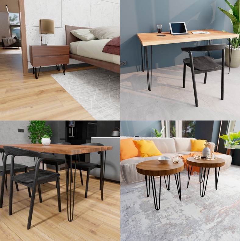 Hairpin nábytkové nohy získaly svou oblibu pro jednoduchou konstrukci, čistý design, stabilitu a funkčnost. Je to už více než 80 let, co se na poli interiérového designu vůbec poprvé objevily. Oblíbené jsou od svého vzniku až do současnosti. Dobře se kombinují s různými styly interiérů a ozvláštní i vaši místnost.