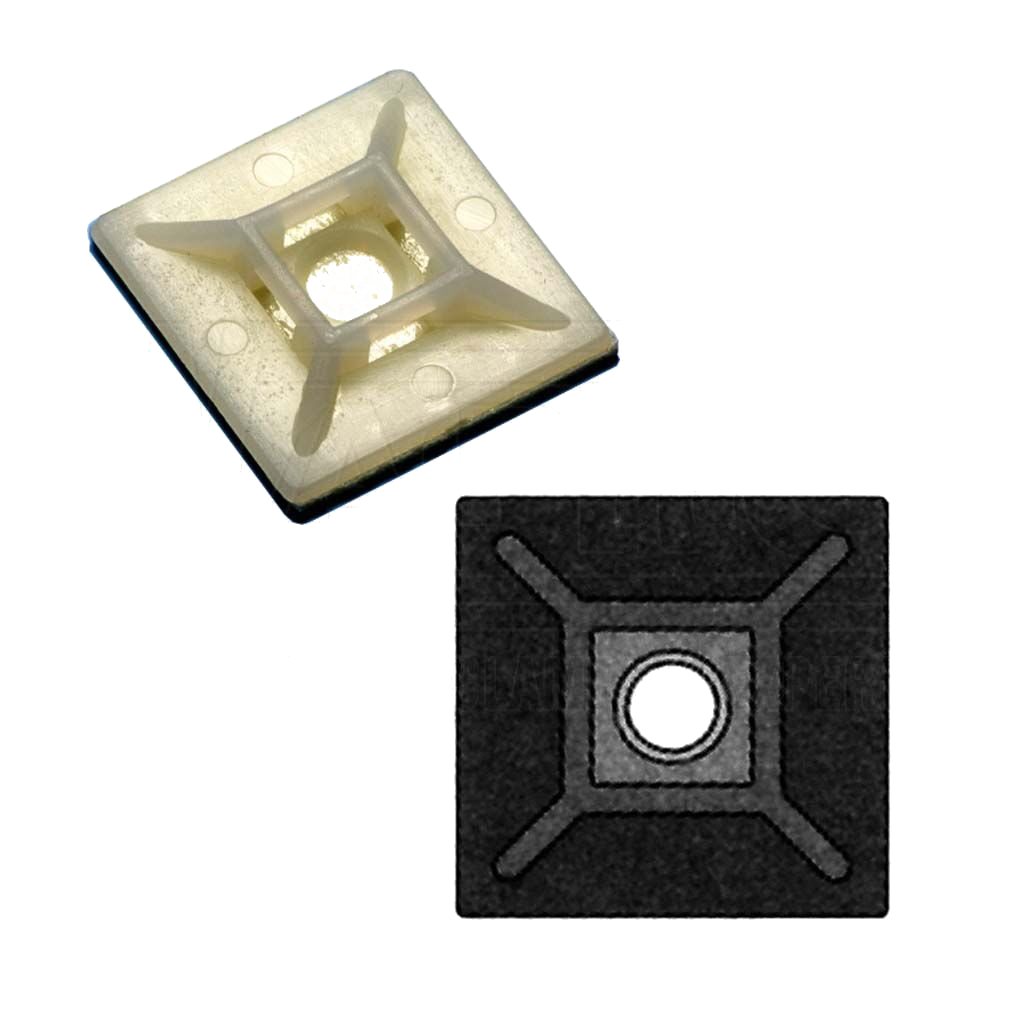 Samolepící (šroubovací) příchytky pro pásky do šířky 5,5 mm, 28,6 x 28,6 mm, přírodní.