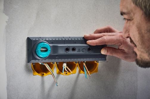 Vyznačení, vyrovnání a vrtací šablona pro instalaci vypínačů a zásuvek. Vrtací souprava „Electrics“ byla vyvinuta speciálně pro rychlou a bezchybnou instalaci elektroinstalačních krabic a souvisejících vložek do cihlových zdí. Volitelně jej lze použít také pro instalace do sádrokartonových desek.