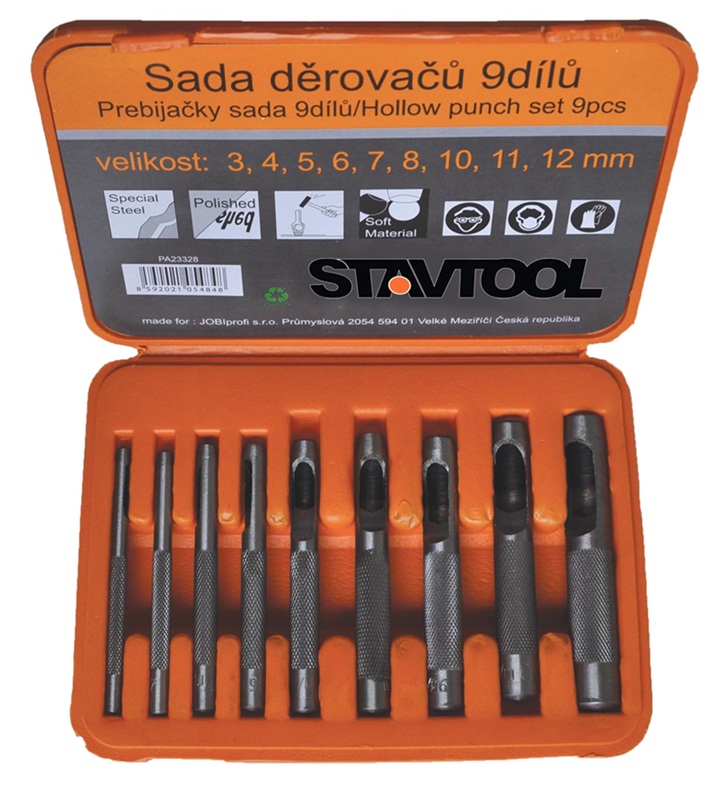 XTLINE pa23328 Sada děrovačů 9 dílů, 3-12 mm, plastový obal