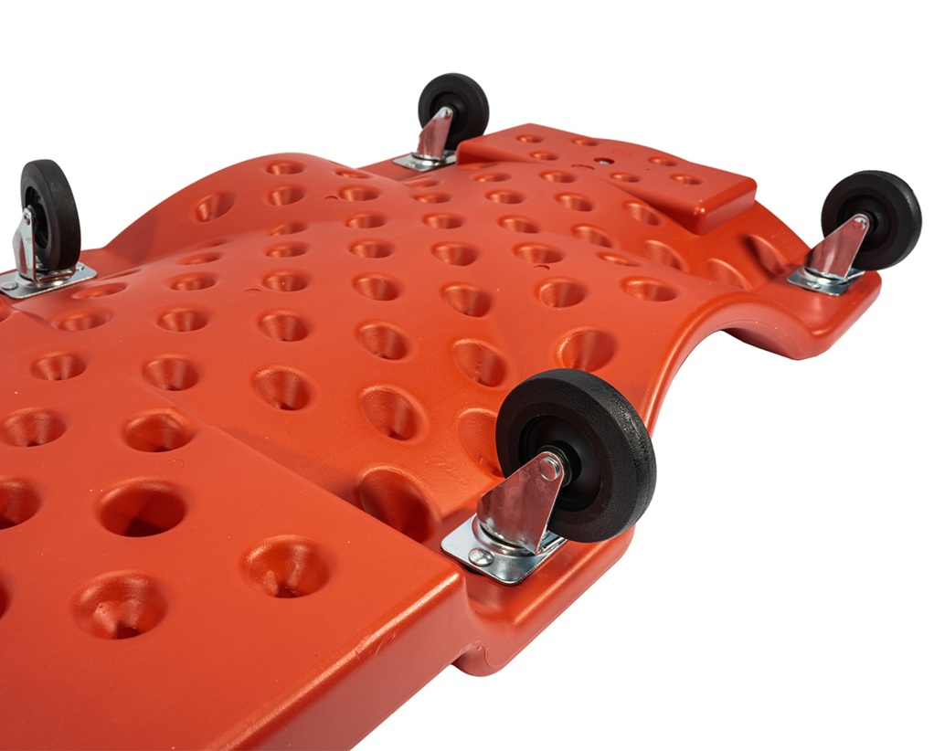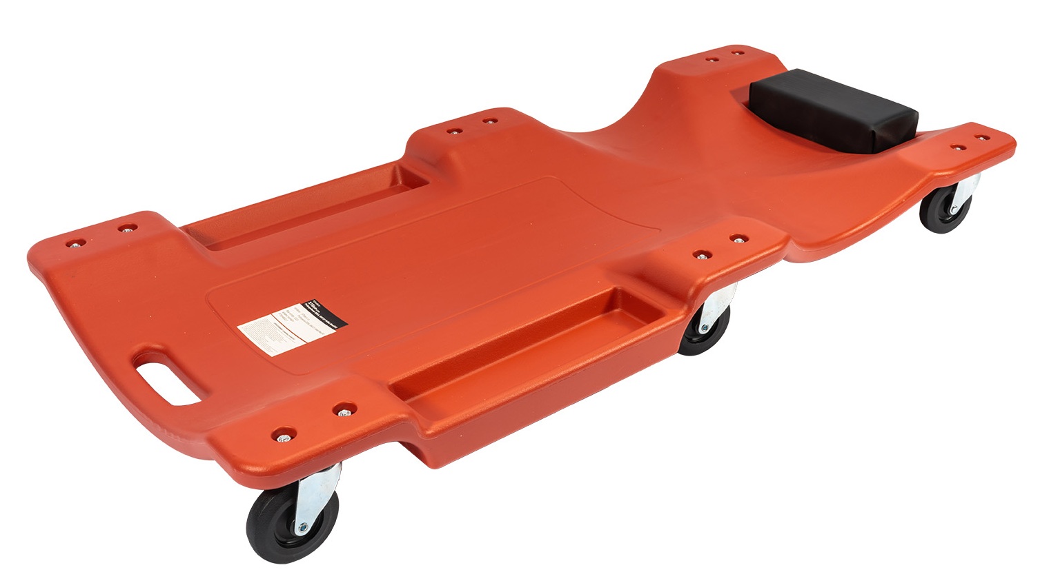 Lehké tvarované plastové lehátko pod auto s polstrováním pod hlavu.