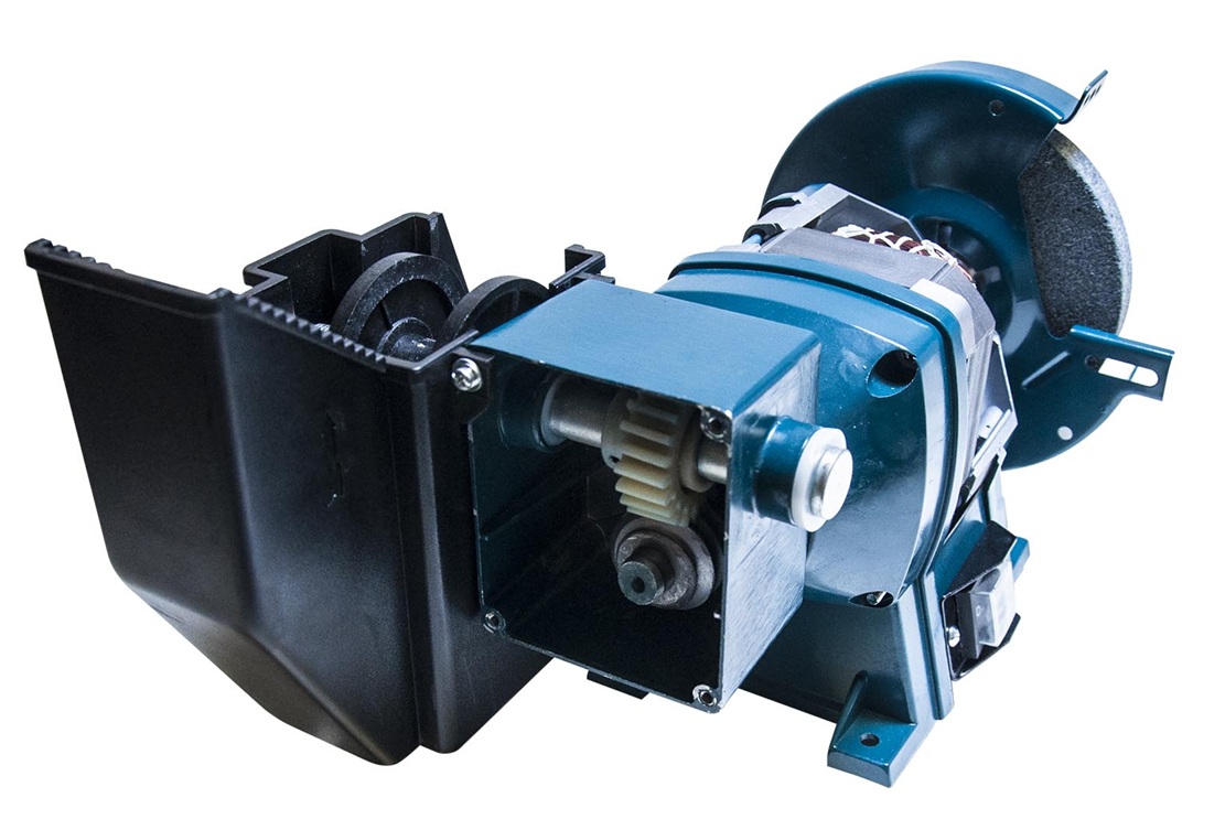 Dvoukotoučová bruska s pomaloběžným kotoučem pro broušení nožů, nůžek a dlát.