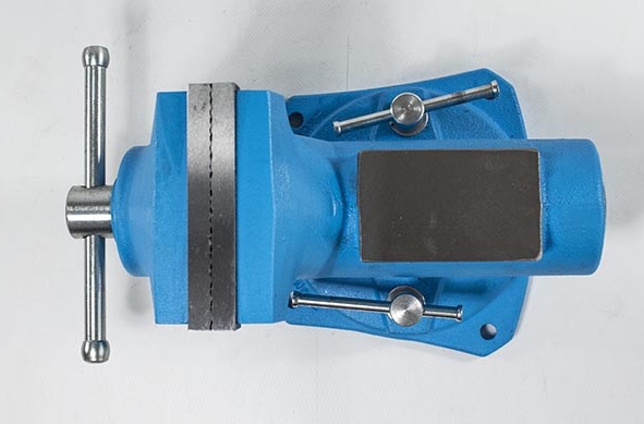 Otočný dílenský svěrák s čelistmi z vysoce kvalitní oceli kalenými na 45 HRC ± 5 HRC.