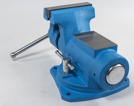 Otočný dílenský svěrák s čelistmi z vysoce kvalitní oceli kalenými na 45 HRC ± 5 HRC.