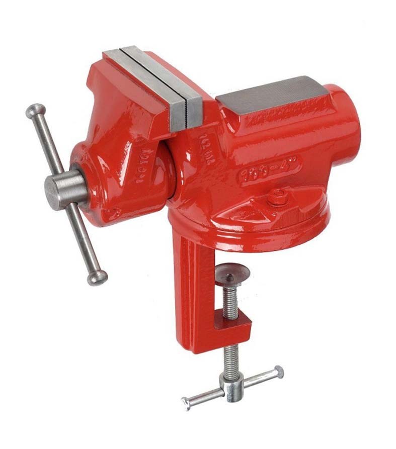 Čelisti z vysoce kvalitní oceli kaleny na 45 HRC ± 5 HRC. Velká kovadlina. Integrovaná otočná deska ±35° s polohovacími šrouby. Přesné válcové vedení. Vratidlo s bezpečnostními koncovkami. Max. tloušťka stolu: 75 mm. Upevnění k základové desce maticemi.