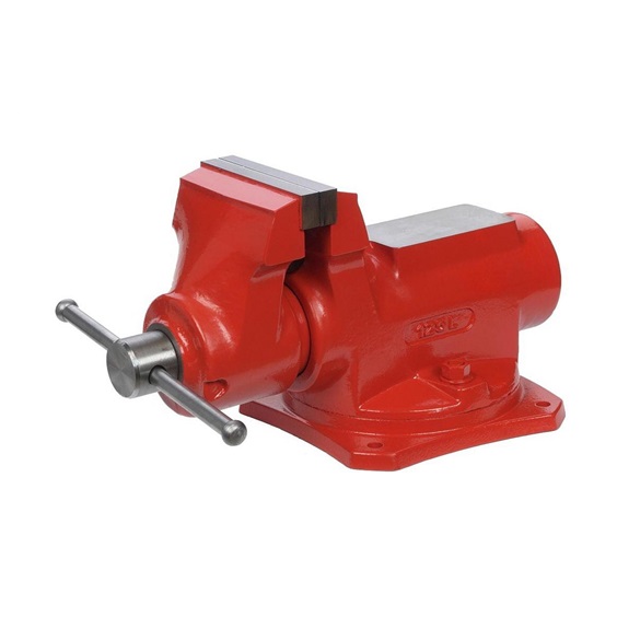 Čelisti z vysoce kvalitní oceli kaleny na 45 HRC ± 5 HRC. Velká kovadlina. Integrovaná otočná deska ±35° s polohovacími šrouby. Přesné válcové vedení vratidlo s bezpečnostními koncovkami. Upevnění k základové desce maticemi.
