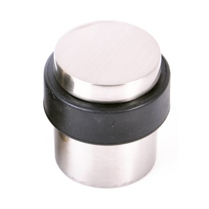 Zarážka dveří ve tvaru válečku pro interiérové dveře. Tlumicí gumový prstenec. Výška: 40 mm. Průměr: 30,5 mm. Celkový průměr (včetně tlumicí gumy): 36,5 mm. Montáž k podlaze vrutem a hmoždinkou. Součástí balení je vrut i hmoždinka.