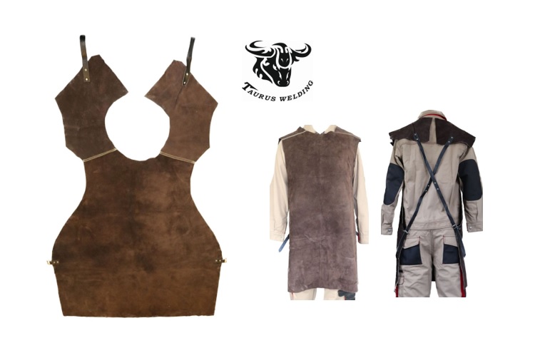 Kožená zástěra z výběrové štípené hověziny - krytá ramena, šité kevlarovou nití - kožené řemínky s kovovými přezkami.