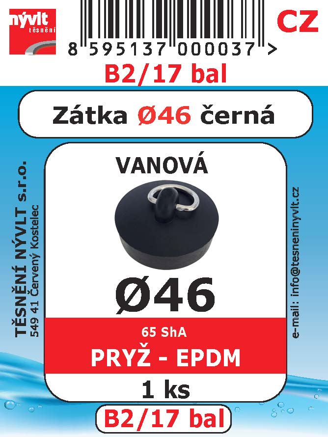 Zátka balená pr. 46 mm černá s půlkroužkem vanová B2/17BAL