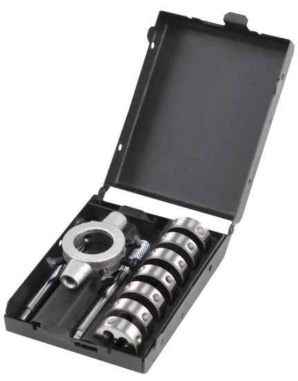 Základní metrický závit se stoupáním: M3x0,5, M4x0,7, M5x0,8, M6x1, M7x1, M8x1,25, M10x1,5, M12x1,75 , tolerance oček 6g. Sada je v kovové kazetě.