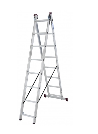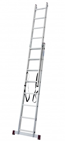 Univerzální hliníkový dvoudílný žebřík Krause. Nosnost: 150 kg.